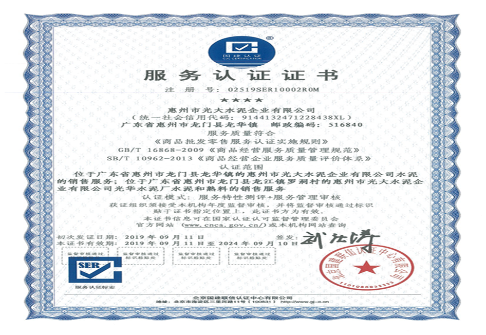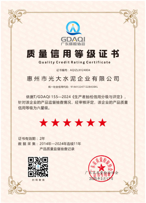 更多光大水泥榮獲廣東省質(zhì)量信用最高等級榮譽證書[2025-05-16]